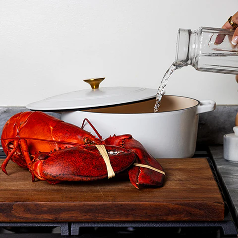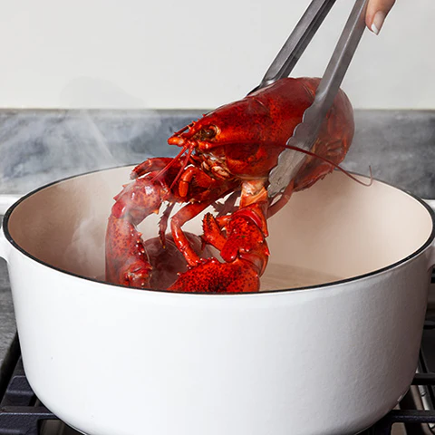 4. Place your live lobsters in the pot with tongs or gloves, and cover the pot tightly.